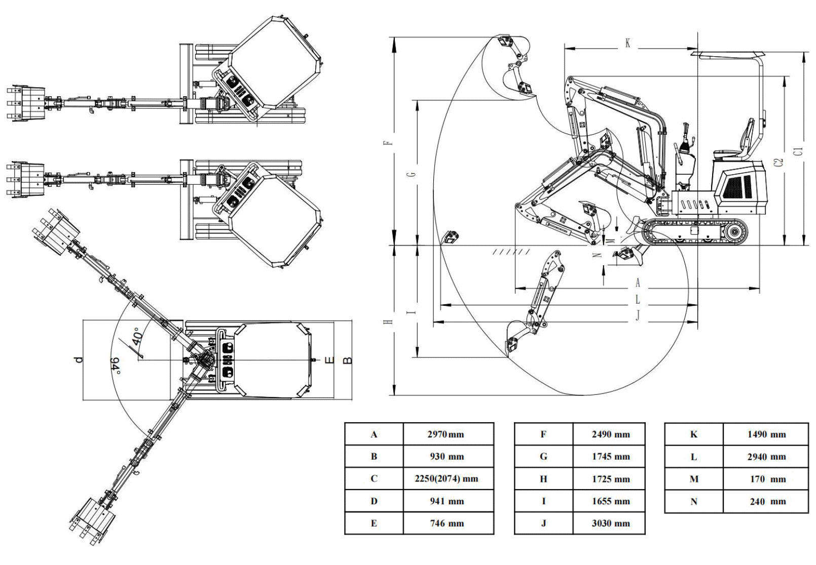 • 3030mm maximum digging distance;